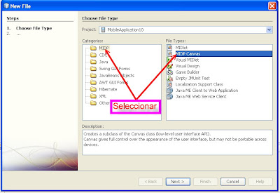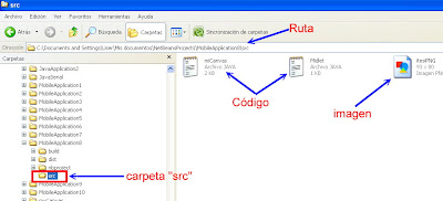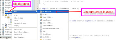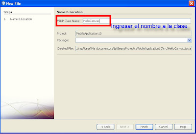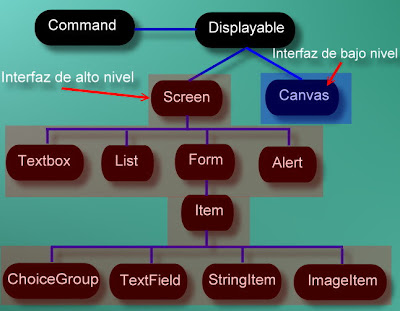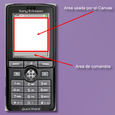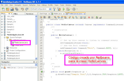 El código parcial de la clase helloCanvas queda entonces así:public class miCanvas extends Canvas implements CommandListener {