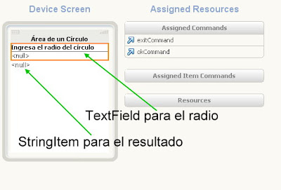 Opción 1: Un TextField para ingresar el radio y un StringItem para mostrar el resultado.